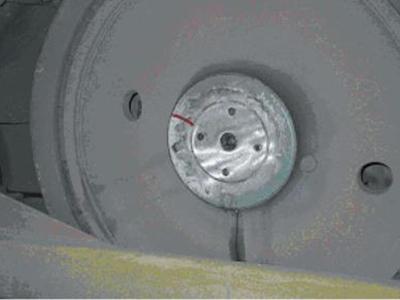 方案:首先使用斜探頭檢測(cè),然而發(fā)現(xiàn)車(chē)輪,剎車(chē)盤(pán),起動(dòng)器的過(guò)盈連接處聲束可以穿過(guò),所謂的端角反射不起作用。 最后使用直探頭掃查模式(圖2所示)在過(guò)盈連接處發(fā)現(xiàn)臨界區(qū)域的所有裂紋是可行和可靠的。通過(guò)旋轉(zhuǎn)掃查器覆蓋整個(gè)周長(zhǎng)的檢測(cè)探頭掃查器如圖3所示。通過(guò)使用ULtraMAP軟件進(jìn)行馬達(dá)控制,數(shù)據(jù)采集,B掃形成。