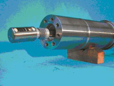 方案:特殊設計的斜探頭可以對縱向中空軸進行檢測,設計的雙晶探頭可以對向前和向后掃查,常用的橫波斜探頭是45度和70度,頻率為2MHZ和4MHZ,探頭的直徑合乎孔徑的大小。探頭通過螺紋表面和導向棒相連接,這種帶有長度比例計算的導向棒可以對兩個方向同時掃描以便每一個情況下的掃查點能被探測到,兩個掃查方向可以通過一個開關進行調節。