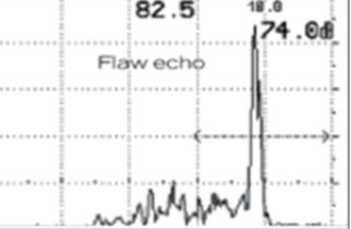 這些A掃描顯示典型回波指示。圖3顯示了來自軸端的裂紋的檢測。 在圖4中,除了界面回波(水和材料之間的回波)之外,沒有缺陷回波顯示,這意味著材料內沒有裂紋。